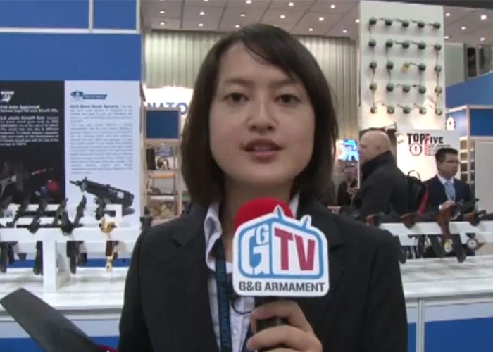 Here's Sylvia, who handles the PR of G&G Armament with their GITV Channel showing us the G&G Booth during the first day of the IWA 2013 & Outdoor Classics.