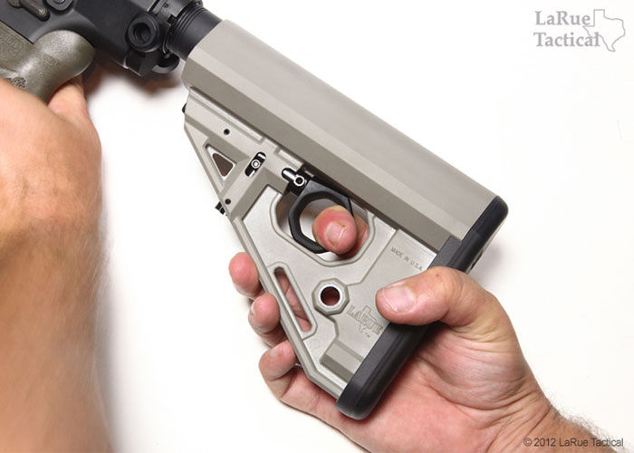 This is a unique way to adjust your buttstock as LaRue Tactical does away with the lever and puts in place a trigger type one. It's now available now for US$115.00 at the LaRue Tactical Online Store...