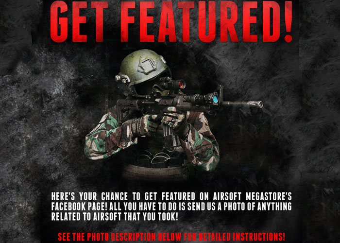 Interested on being featured? Then read on... "Here’s your chance to get featured on Airsoft Megastore’s Facebook page! All you have to do is send us a photo of anything related to airsoft that you took! It doesn’t matter if it’s from instagram or a camera. It doesn’t matter if it’s CQB or Outdoors.
