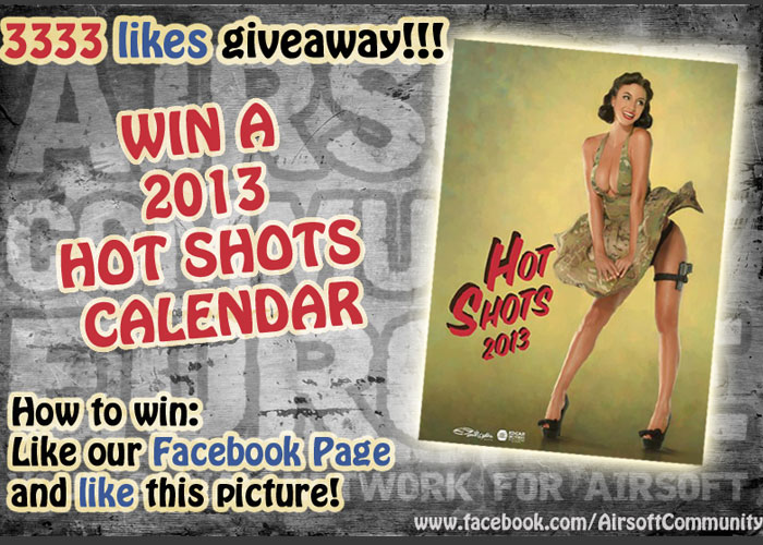 Do you want to win a Hot Shots 2013 Calendar where you can see all those gorgeous pin-up girls? Here's your chance to win as Airsoft Community Europe are having a Faceboo giveaway contest. Help them achieve 3,333 likes at Facebook you might be the lucky winner...