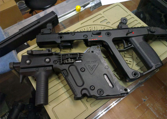 And now we get a definite release date of the KWA KRISS Vector Gas Blowback SMG from our friends from Public Enemy. The photo above show a pre-shipment unit that is being sampled and tested in Taiwan.