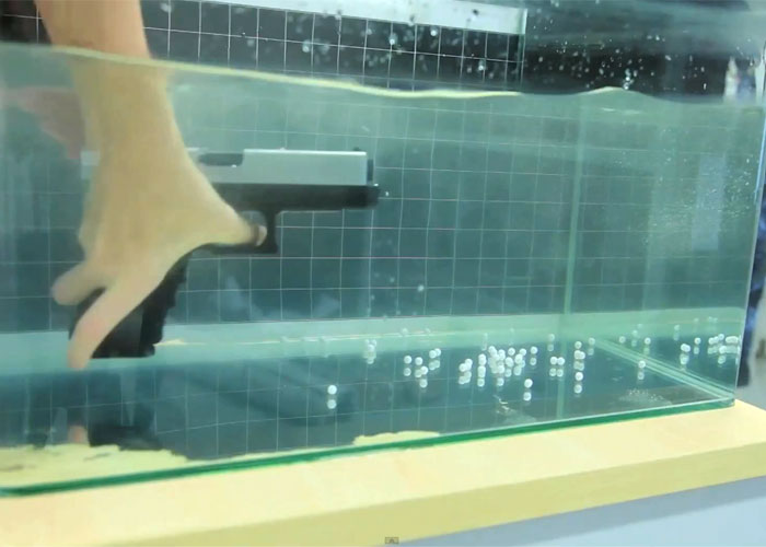 Here's the follow up video on how gas blowbacks work underwater. If you want to try it yourself, be prepared to clean your gun right after doing it...