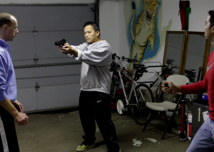 It's hard to really get the story of this video, though we understand it's about Wing Chun. This short film at Vimeo shows a burglar or a hitman about to enter a wrong place where three Wing Chun martial artists are about to fight to the death.