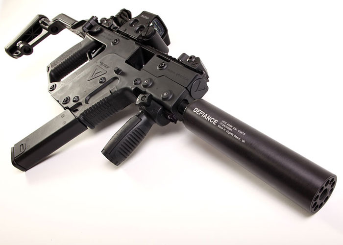 The HPS 4GSK Suppressor made for the KRISS Vector .45 SMG is now finally released by Defiance. This has been announced previously by KRISS Systems and it will fit all KRISS SMG, SBR, and SDP versions as this supports M16X LH threaded .45 ACP models.