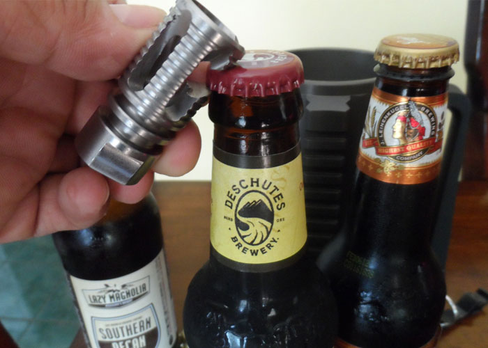 The designer of the Battle Mug, posting at the AR15 forums, said that he made this bottle opener after slaying some face eating zombies.