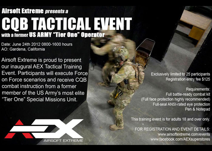 Now's your chance to learn Close Quarters Combat which Airsoft Extreme will be holding on the 24th of June 2012. Be sure to register first rather than showing up at the venue as slots are very much limited...