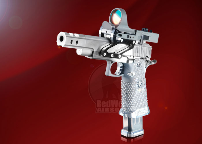 If you think that the Swarovski-studded custom open pistol projects of the Airsoft Surgeon is not doing well, you're wrong. We had a conversation last Sunday with the RedWolf Team and we asked about the this and they said they are actually getting orders for this exquisitely made gas blowback airsoft pistols.