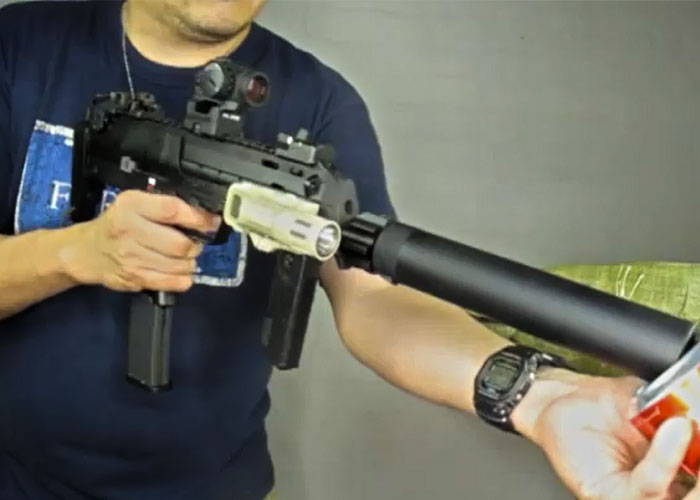 Public Enemy sent us this video showing the Magazine and Silencer from Angry Gun designed for the KSC/KWA/Umarex MP7 Gas Blowback SMG.
