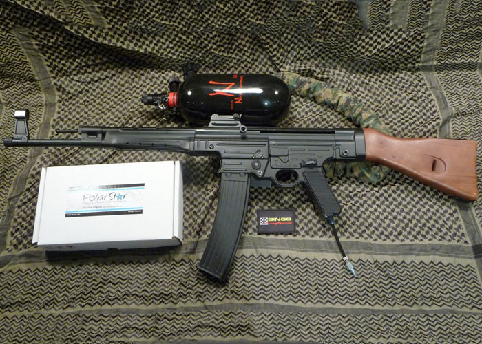 Another conversion work by Bingo Airsoftworks, with the AGM MP44 AEG being the base gun with which they installed the PolarStar Fusion Engine, making the rifle ready to take in HPA tanks and a good pe