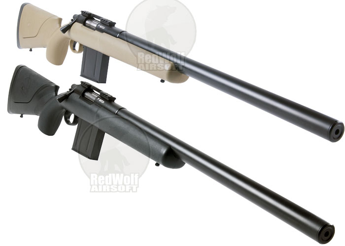 Take your pick, the black or dark earth one? Both are available at RedWolf Airsoft for US$199.00... "This powerful new sniper rifle had turned the tables on battle. Now the hunter has become the hunted. It completely likes a beast summoned.