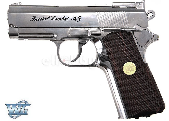 These WG Compact .45 CO2 6mm Pistols are available in chrome and black versions at eHobby Asia with the Chrome one at US$98.00 whilst the black version is US$90.00.