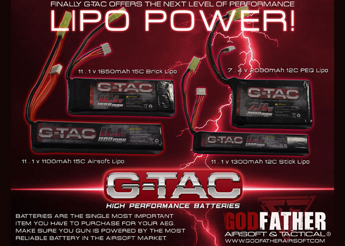 Godfather Airsoft & Tactical is proud to announce that they have stocked on lipo batteries from G-Tac. Click on the product page below to immediately check these out...