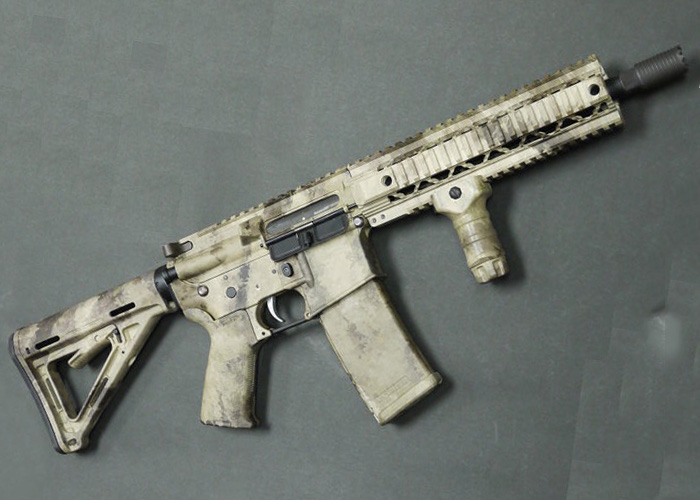 King Arms Blackwater AEG Carbine that has been kitted out with various Magpul PTS accessories ranging from the MOE stock, AFG, MBUS, and the MOE Polymer Trigger Guard.