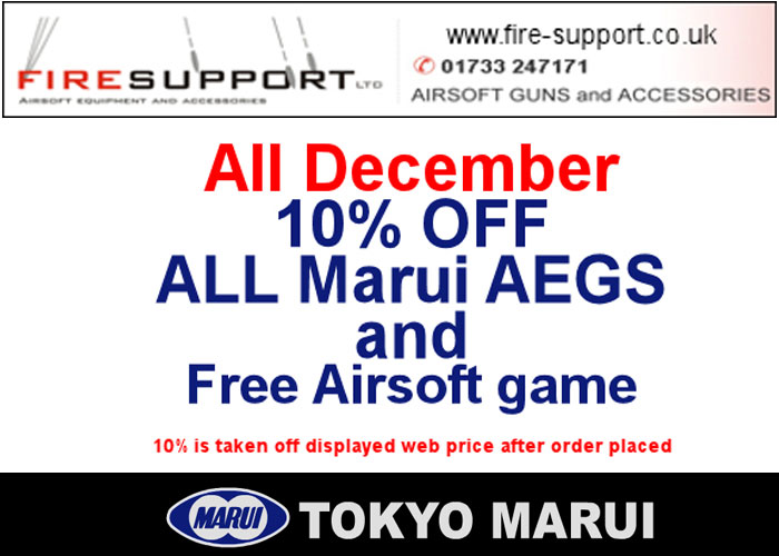 UK airsoft players better grab this chance to get Tokyo Marui AEGs from Firesupport as they're offering 10% off on all of these for the whole of December whilst stocks last. You better hurry before others beat you to it.