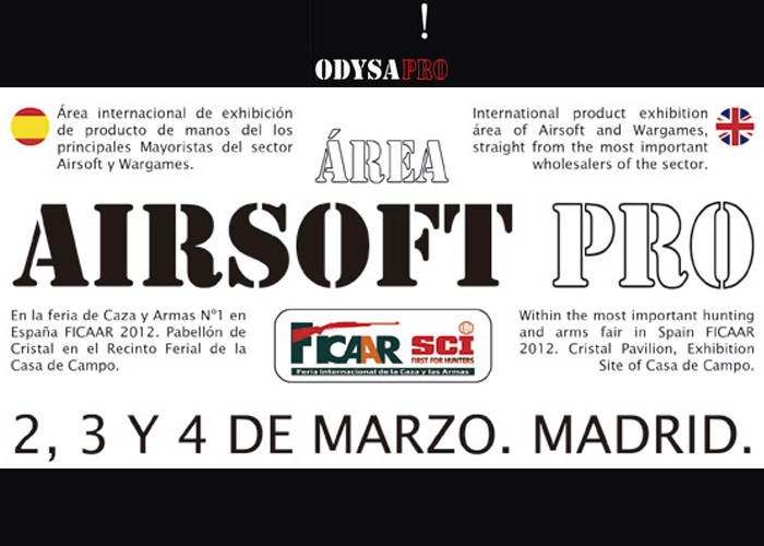 Airsoft exhbitors are welcome to setup at the airsoft area of International Hunting and Weapons Fair (FICAAR) which is managed by Odysa Pro... "From ODYSA PRO it is a great pleasure to announce the third edition of AIRSOFT PRO Area in FICAAR 2012.