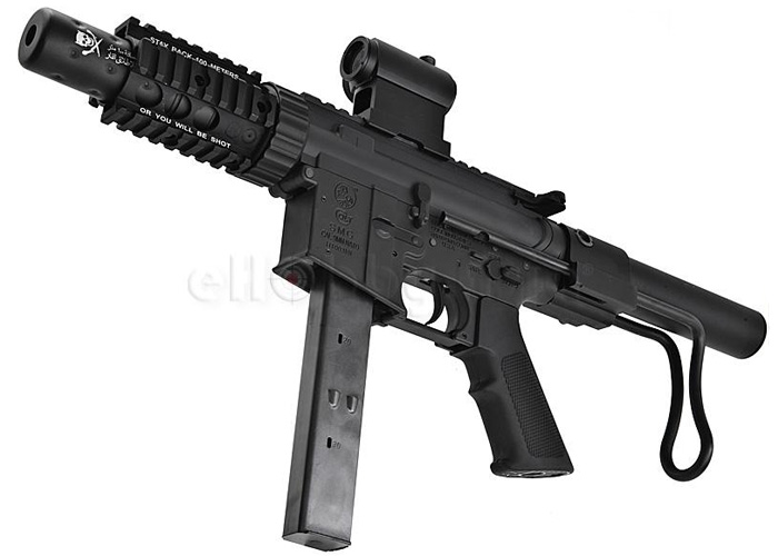 Pistolised M4 AEG which takes in a 9mm magazine for that sure CQB flexibility. It can also work as a secondary weapon in woodland games. This has the Colt markings and full aluminium diecast body. With the exception of the pistol grip, everything else you see in the exterior is metal.