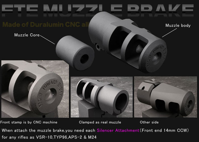 As promised by PDI Japan, Tomo sends in the news of the availability of the FTE Muzzle Brake for VSR-10, L-96 AWS, and the Maruzen Type 96.