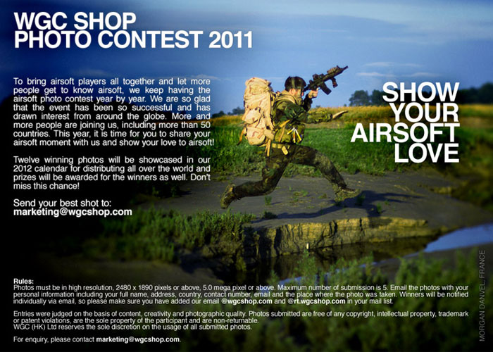 WGC Shop are reminding everyone to send in their photo entries as their contest ends tomorrow... "To bring airsoft players all together and let more people get to know airsoft, we keep having the airsoft photo contest year by year.