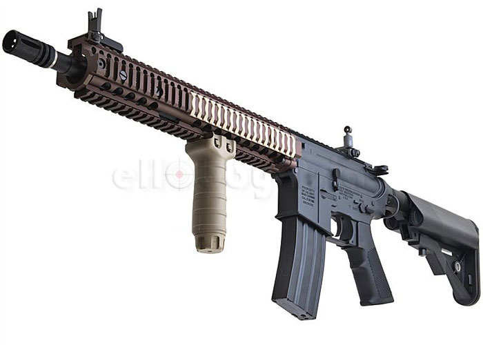 Latest version of the G&P M4 AEG which is kitted with a MadBull Daniel Defense RIS II free floating rail system handguard licenced by Daniel Defense through ISGK, sister company of MadBull Airsoft.