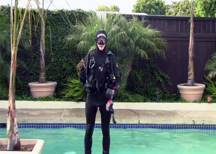 What's the other best way of using the swimming pool during summer apart from swimming? Use it for airsoft reviews and Funky Lizard shows you the way how to do it, scuba gear and all.