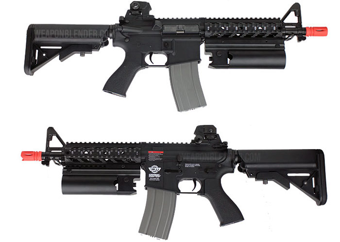 A simple customised G&G Combat Machine Raider that has been fitted by Weapon Blender with the Arma AXM203 full metal grenade launcher which will cost you US$189.99.