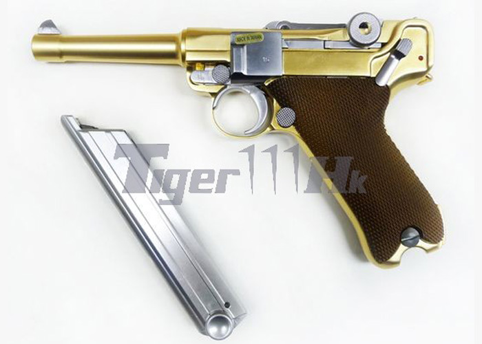 The latest products at Tiger111HK this week. They have the 4-inch Luger gas Blowback pistol in Gold made by WE. That's another blinged pistol that either would use in a skirmish or encase in glass as part of your collection.