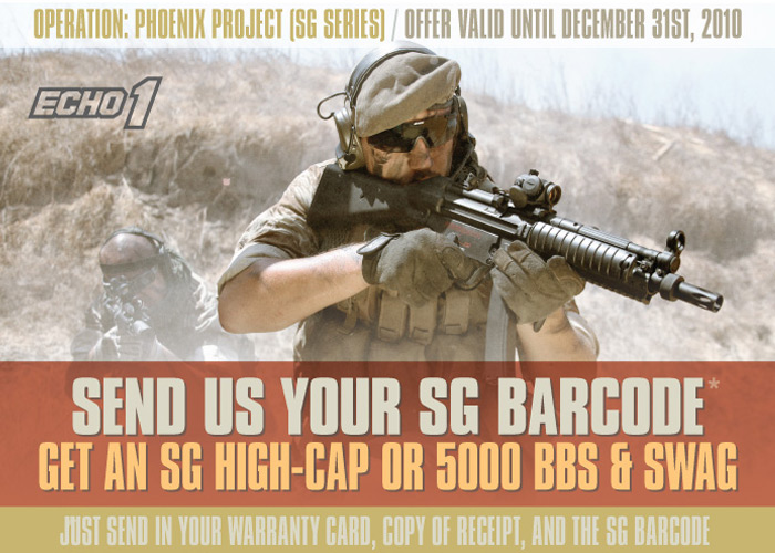 If you are still using the Echo1 SG Series (MP5 replicas) you can get a bag of bbs or a high cap magazine just by following their simple instruction...