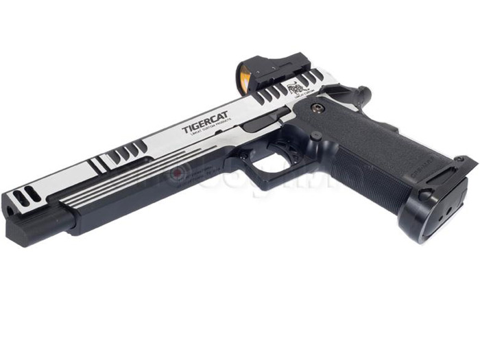 New custom work race gun made by eHobby Asia. This Limcat TigerCat Custom is a two-tone airsoft gas blowback pistol that is based on the Tokyo Marui Hi-Capa 4.3.