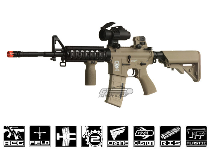 Latest custom AEG based on the G&G Combat Machine from Airsoft GI... "Never before have we built a gun with such a high value per dollar ratio. The base gun is a special Combat Machine M4 Blowback with a crane stock that's wired to the back.