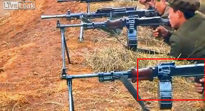 The other screenshot shown below also show a combination of airsoft and real RPDs The problem with the Milsimers was that they put the airsoft gun in the foreground and again forgot to put video effects on it to simulate real weapons firing. You'll find the airsoft gun being fired here with the Milsimer pulling the trigger but there is no muzzle flash or even recoil at 1:48.