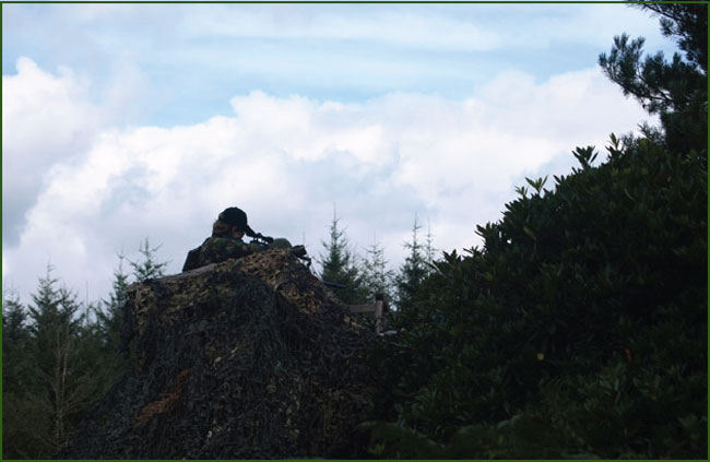An airsoft sniper should also observe proper “sky lining” or “silhouetting”. Never, ever go along the top of hills or ridges. If walking near the top of a hill is imperative, he should navigate the terrain about 5m to 10m off the peak or horizon. Also, an airsoft sniper should never look OVER something; instead, looking AROUND it is much less obvious.
