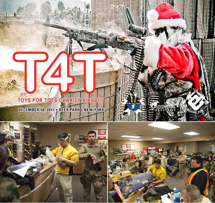 Deer Park, NY. On Saturday night, December 10, players came out from all over the tri-state to give those less fortunate than themselves a happier Christmas. NYC Airsoft organized a toy drive for for the Marine's Toys for Tots program. Players who donated a new toy got discounted entry to Strikeforce Sports CQB arena.
