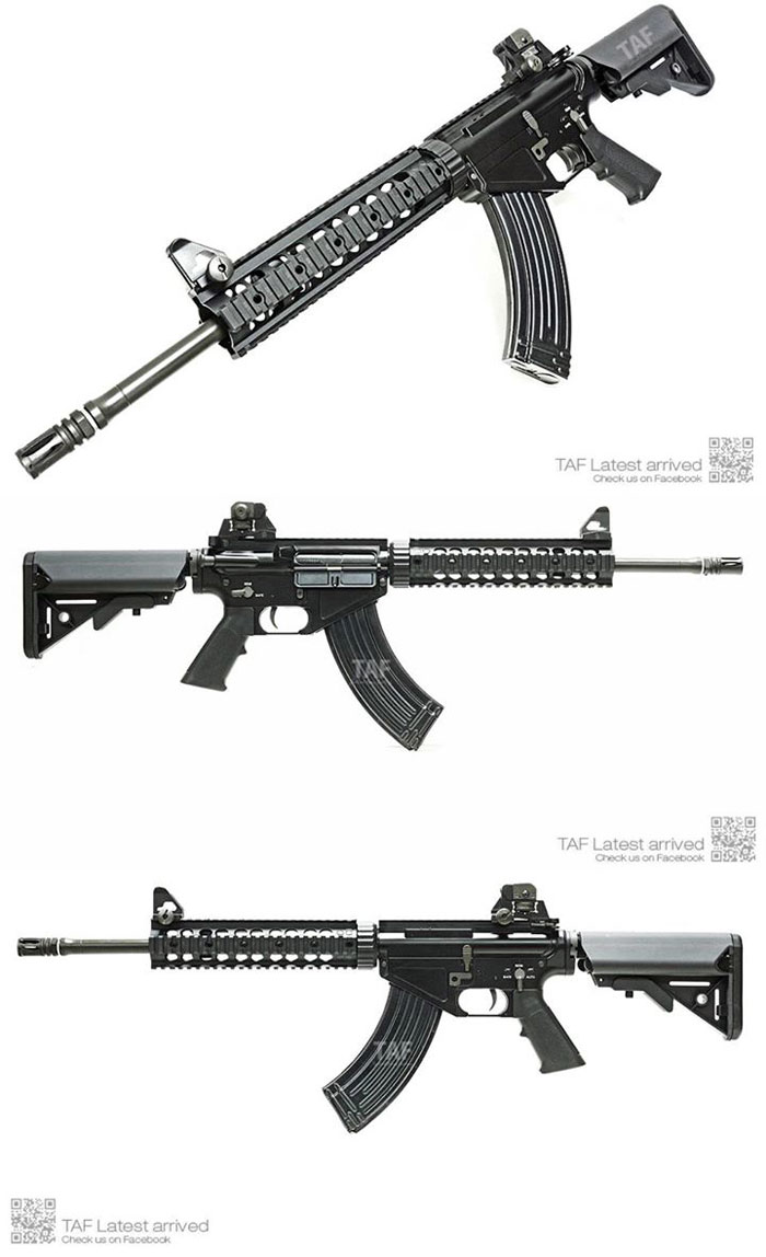 One the rarest rifles in the market, which of course probably would also mean they are off the market is the Knight's Armament Company SR-47 which is part of the AR family rifles but is the only one that can take in AK Magazines and fire 7.62mm rounds due to requirements of special operations troops in Operation Enduring Freedom. It's also the rarest airsoft gun in the airsoft market and one can only have one if one can find the Hurricane SR-47 kit which is also expensive to buy and you still need to assemble it.