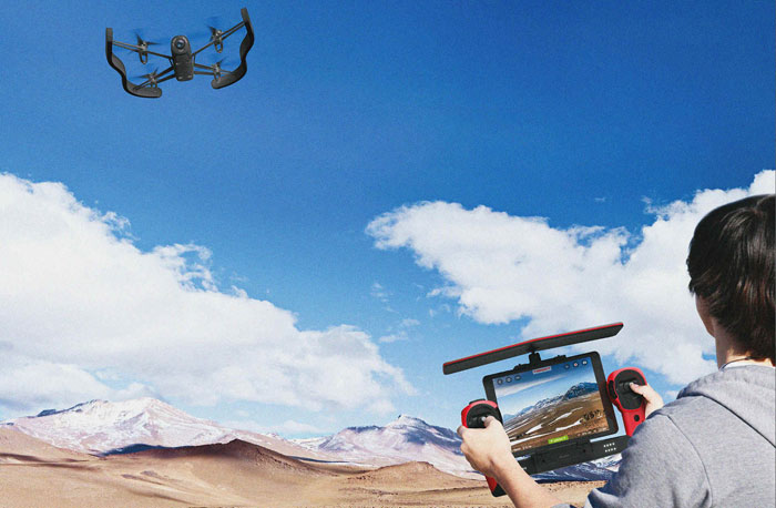 One of the best features of the AR.Drone is the controller features as you get the same view as what the drone sees. This is further enhanced with the Bebop Drone with the introduction of the SkyController giving you more controls with the dock for smartphones and tablets. And you can attach the SkyController to First Person View (FPV) Glasses such as the Oculus Rift, Zeiss Cinemizer, Epson Moverio, or Sony Personal Viewer. You get a more cinematic view of what Bebop Drone sees with its 180-degree HD camera. The Freeflight application will be at version 3.0 and its ease of use makes it flying this drone with a first person view fun.