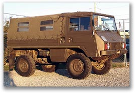 The Pinzgauer is one of the most capable all-terrain vehicles ever made. While not as fast as the Hummer, it can carry more. The smaller 710M can carry 10 people, or two NATO pallets. The 4x4 710M can tow 11,000 pounds on road, or 3,300 pounds off-road. Its 90 horsepower, 4-cylinder engine is capable of maintaining highway speeds of 60 to 70 miles-per-hour pulling a trailer (empty) and has a range of over 250 miles on one 20 gallon tank of gas.