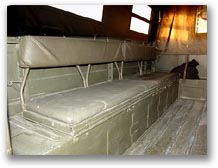 The Pinzgauer also has a very advanced chass which contributes to its high mobility. It has a central tube chassis with a transaxle which distributes the weight more evenly and keeps the center of gravity as low as possible. The differentials are sealed units and never require additional lubrication. The Pinzgauer also has portal axles just like the HMMWV, Hummer H1, and Unimog to provide extra clearance over obstacles. The cargo bed seats can be folded down across the footwell to create a flat cargo surface (or bed). Here are some other vehicle and performance specifications: