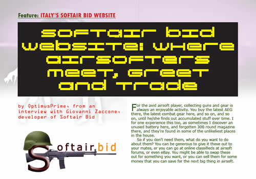 We have Pioneer Rich Technology Development or P.R.T.D in our Manufacturer-in-Focus section. P.R.T.D. is the manufacturer of the Hakkotsu Thunder B Sound Grenade, which MasterChief had the pleasure of “bang-ing” up in our Geardo Section. Brahma got the surprise of his life upon learning that the people behind Airsoft Research Syndicate (ARS) are Filipinos, contrary to initial reports about “some Japanese engineers” making a breakthrough in Sorbothane’s application in airsoft. Learn more about ARS as Brahma interviews T. Kashino, et al—the geniuses behind Sorbo pad. OptimusPrime has put his more-than-average command of the Italian language to good use, as he interviewed Giovanni Zaccone, the man behind Italy’s Softair Bid Website. Wrapping up the Features Section is Brahma’s inside look at airsoft in Canada.