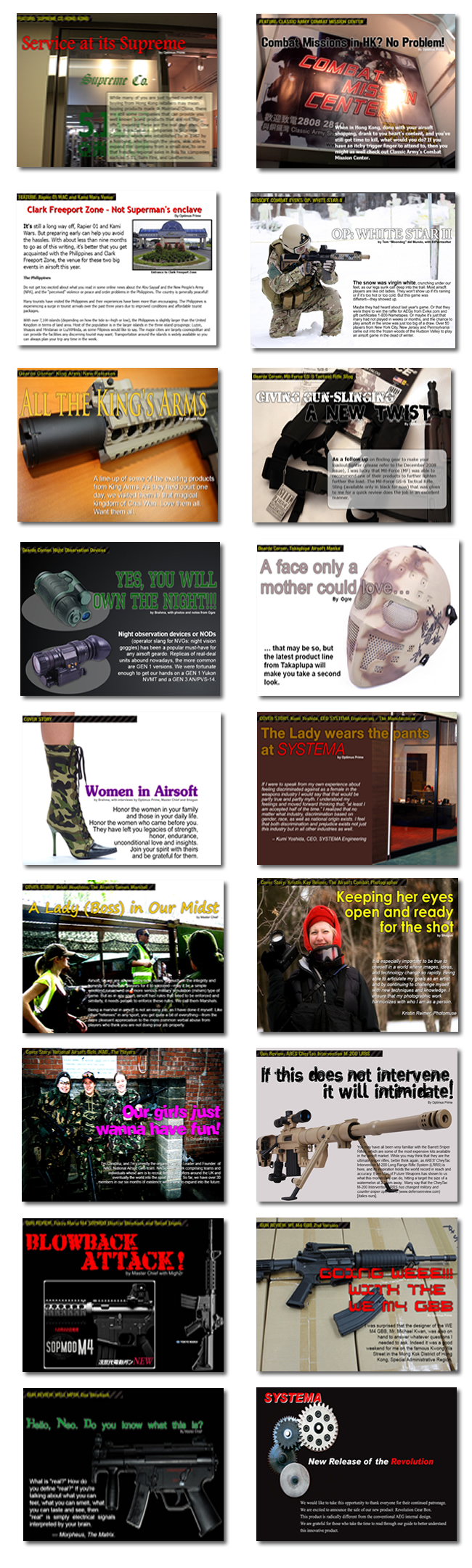Now we have reached a milestone --- the completion of the First Volume of the Popular Airsoft Magazine. Albeit late, we can be proud to say that this last issue for the first volume has been worthwhile with the Cover Stories presenting to you women who are making an impact in their own locations or around the world with what they do for Airsoft. Interesting women they are, we highly suggest that you read about them. In a male-dominated sport/hobby, who doesn't want to have them around? They bring a fresh perspective to the sport and what they do helps the sport a lot --- especially in promoting the hobby to all genders and sexes.