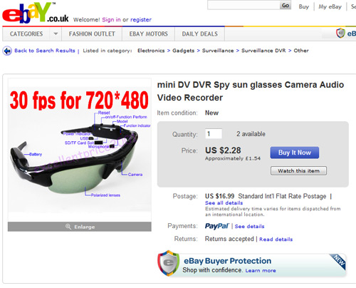 The technology is already available, and all it take is just a change of lens being used. If you check at eBay, there has been a proliferation of DVR Spy Glasses which cost around £15.00 (US$22 as of this writing), and free shipping already included. Most of these are offered by Hong Kong and Mainland China retailers. Good for ordinary day use, but I would not walk in public having this set. It smacks of voyeurism (which was why it was actually made), and of course an invasion of privacy of people.