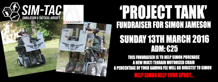 Sim-Tac Airsoft, located in Gibstown, Meath, Ireland will be hosting “Project Tank - Fundraiser for Simon Jameson” event on the 13th of March 2016. Interested players in Ireland can book their slots now: