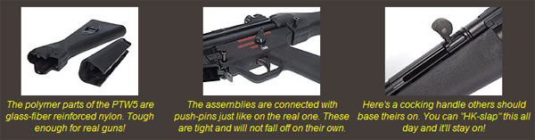 The idea of producing a PTW5 dawned on Systema three years ago. As the PTW M4/M16 series have evolved and refined, it is only natural development to look at other models to produce, and this new SMG is a rather obvious choice. Other electric airsoft models are built around the old gearbox design with a receiver structure from the early 90's and don't have a burst feature, so there really is a gap to fill.