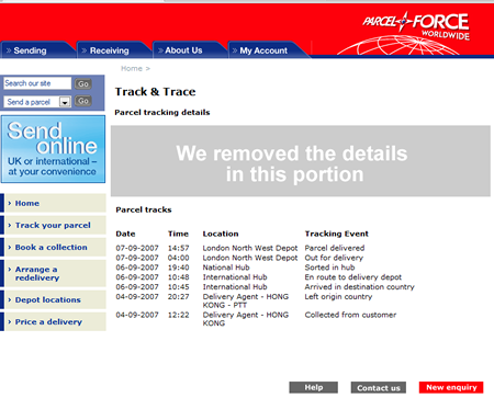 Thursday (6 September) and an email arrived from RSOV.com's aftersales team informing us of the Tracking code and that the item has been shipped last 4 September. So far, no word yet from SAS on the status of our order.