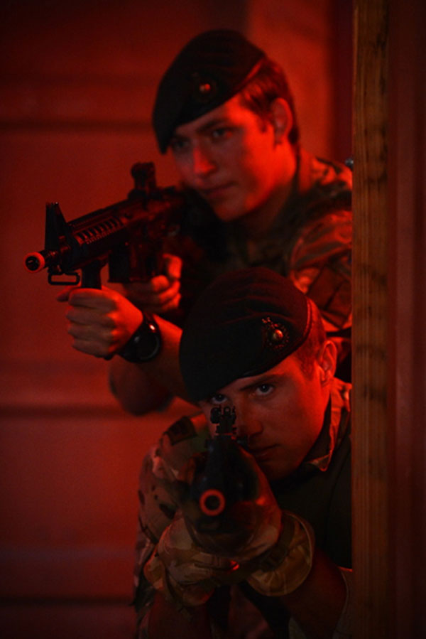 Marine Ryan Billington goes low while Marine Jack Brent goes high during the walkthrough before the firing exercise [Picture: Crown Copyright/MOD 2013]