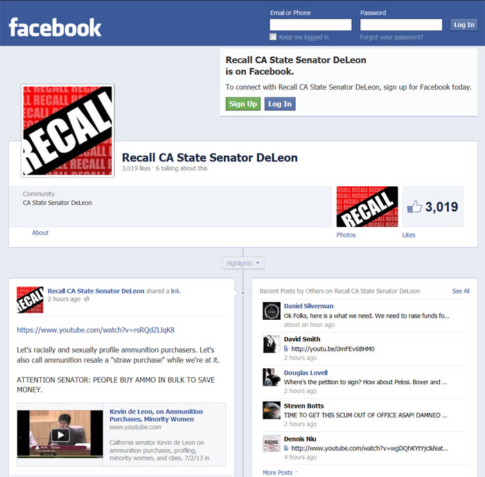 Recall Efforts Against Senator De León On Facebook
