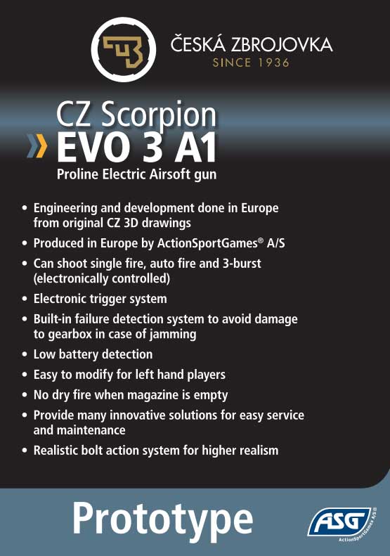ActionSportGames ® (ASG) is very proud to present the CZ Scorpion EVO 3 A1 official licensee by CZ Cêská Zbrojovka at Shot Show 2012 in Las Vegas, Nevada at the ASG booth 2643.