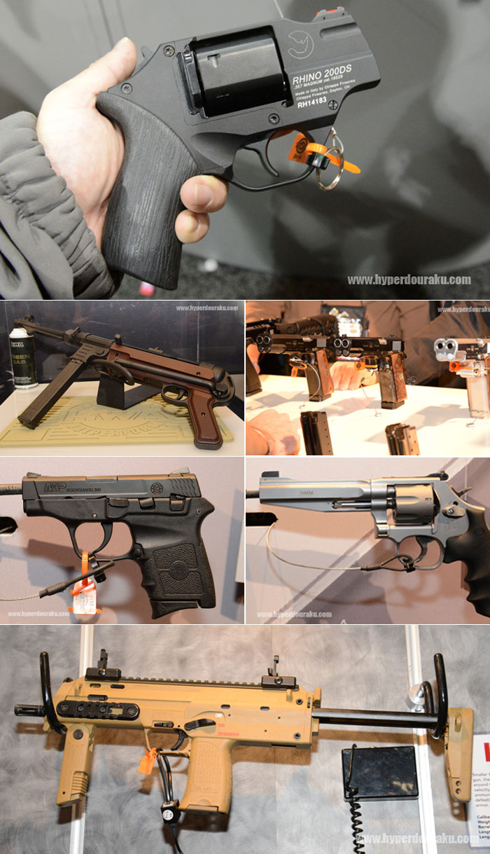 Hyperdouraku took some good photos of Smith & Wesson pistols on display and the already released Arsenal AF2011-A1 Double Barrel Pistol. The latter attracted a lot of whistles when it was first revealed in 2012. He also gets to visit the KWA booth to check the MP7A1 in tan and their upcoming releases.