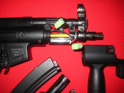 ELECTRIC AIRSOFT GUNS or Automatic Electric Guns (AEGs) are the most popular weapons found in most airsoft skirmishes in the world today. AEGs are battery-operated, as the name implies, and rely on an electric motor (similar to those found in remote control cars) to drive a gearbox assembly with a pneumatic piston. These guns are capable of full automatic fire at rates comparable to those of real-steel automatic weapons. They are typically powered by rechargeable battery packs.