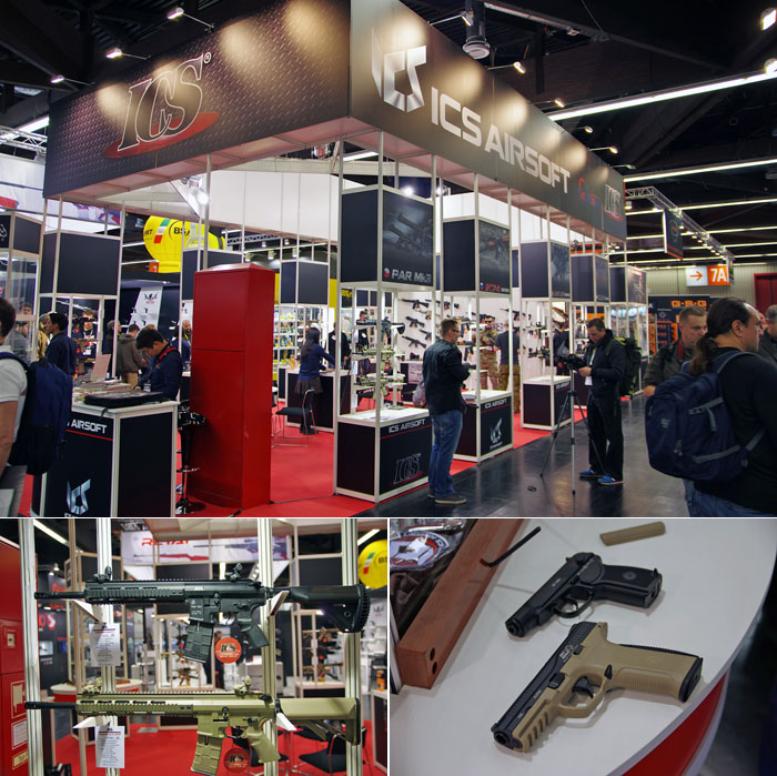 ICS was the first booth we went two, as we always make sure we get to see the latest in the Transform4- CXP series. For this year, it's the ICS CXP Captain and it's made with CQB in mind, and just like its bigger brothers, it has the Transform4 split gearbox and electric blowback. ICS are also going into the airsoft pistol business, announcing the BLE line with the Non-Blowback Makarov and the BLE Alpha Pistol which has some similarity with M&P9 pistol that Cybergun demanded that they remove it from display.
