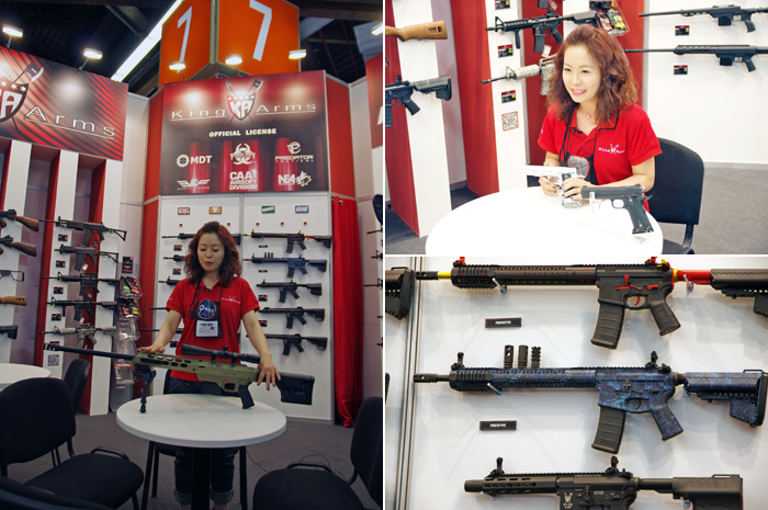 At around 1300H, we get our first chance to see the Black Rain Ordnance airsoft versions being made by King Arms. There was a unit on display at the Black Rain Ordnance booth at the SHOT Show 2016 but here, they have more versions on display and we do like to sporty look of these rifles. A new line of King Arms airsoft rifles, the TWS or Training Weapons System, and the pistols licensed by Predator Tactical were on display as well and a more detailed presentation will be posted on our YouTube Channel. Also the MDT Sniper rifle was on display.
