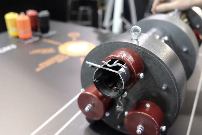 Speaking of launchers, they have a more efficient and affordable 40mm gas grenade shell and has fewer flaws than the competition. It is easier to maintain leading to a lower cost ownership. More grenades were on display: a BFG that uses 9mm shells, the Kimera Sound Grenade, and the Nuke Frag Grenade.